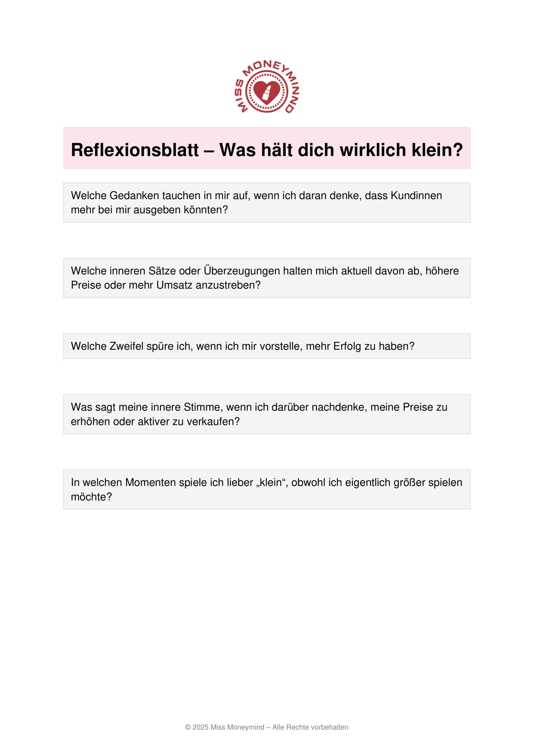 Die Reflexionsfragen sind dein ehrlicher Business-Spiegel.
